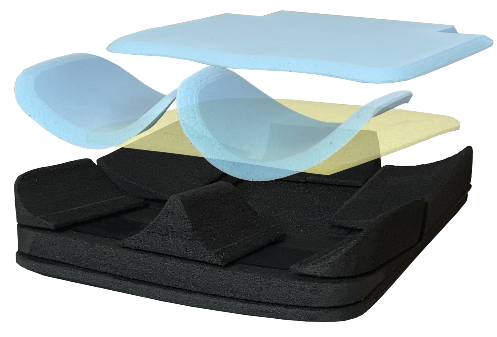 – część tylna: dwie warstwy pianki (pianka z pamięcią kształtu i elastyczna pianka otwartokomórkowa o niskim współczynniku sprężystości) w celu zapewnienia maksymalnego komfortu i najwyższej ochrony przed ryzykiem odleżyn;